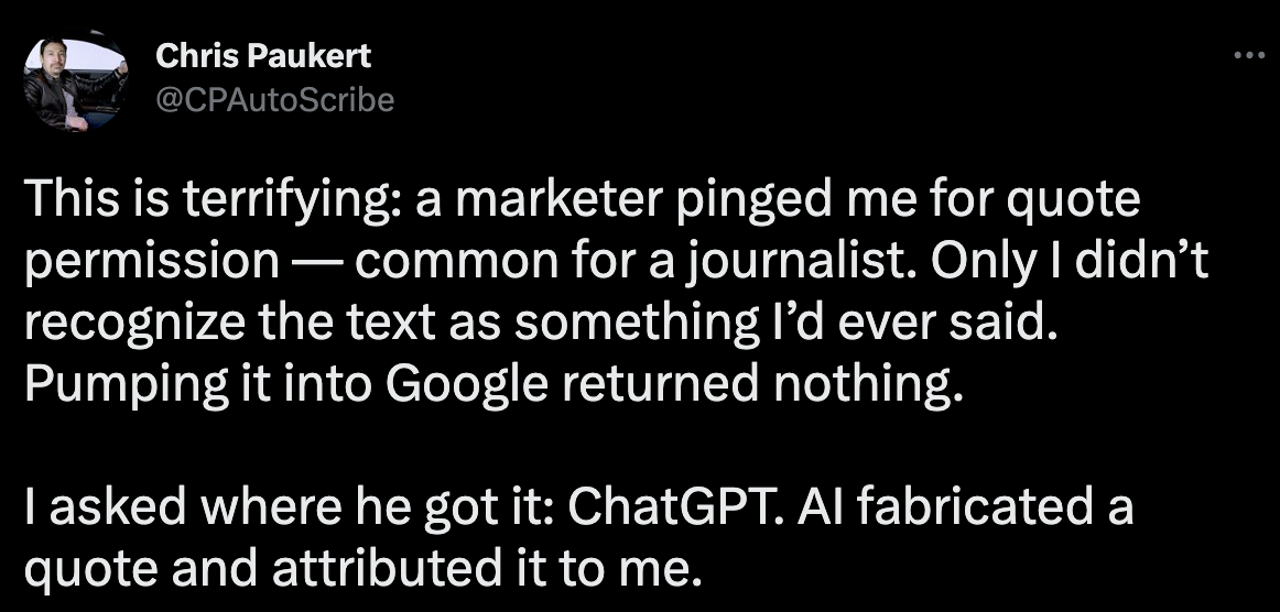 You'll also see ChatGPT making up references to scientific papers that don't exist, inventing facts, and generally confidently lying to you.